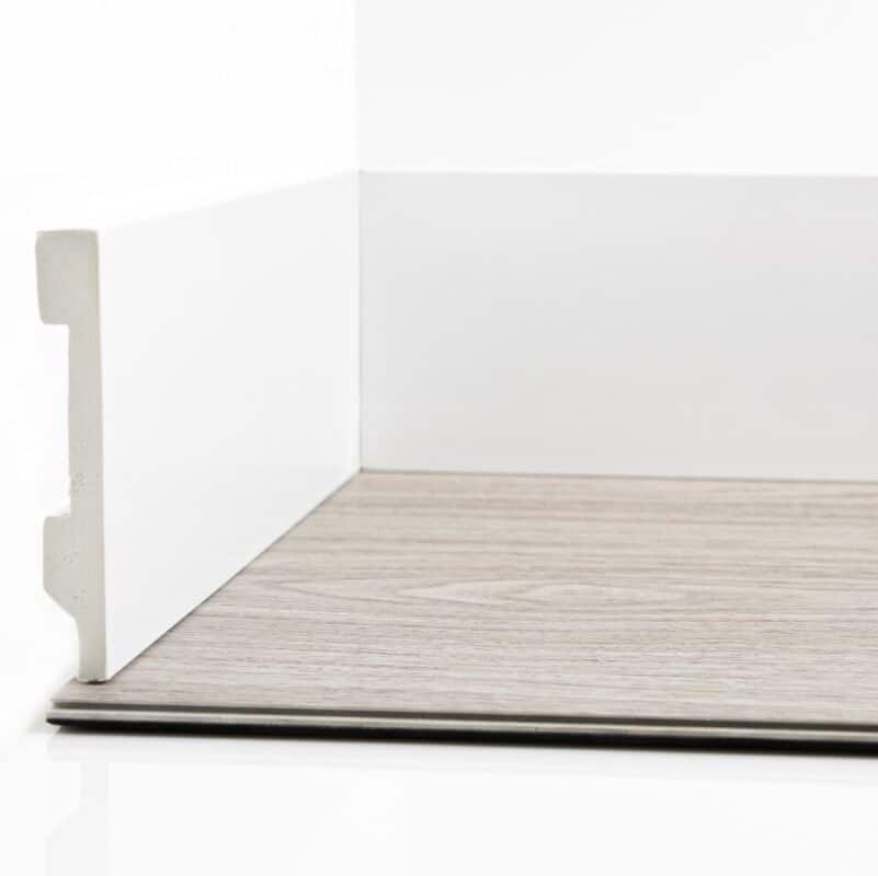Rodapie PS blanco GALAXY LINE RBGL10 – Rodapié PS (poliestireno) en color blanco de altura 10cm para suelos de vinilo GALAXY LINE Serie Orion. Es 100% resistente a la humedad – Medidas 2200mm x 100mm x 15mm – 1 Tira
