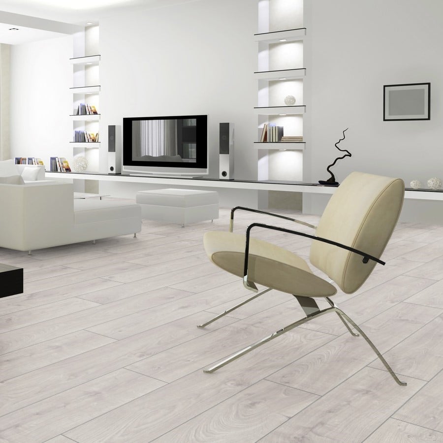Roble Atlas White KRONOTEX Exquisit D3223 – Los laminados Kronotex son suelos biselados a 4 lados de fácil mantenimiento y especialmente resistentes. Fabricación alemana difícilmente inflamable y aptos para calefacción por suelo radiante.