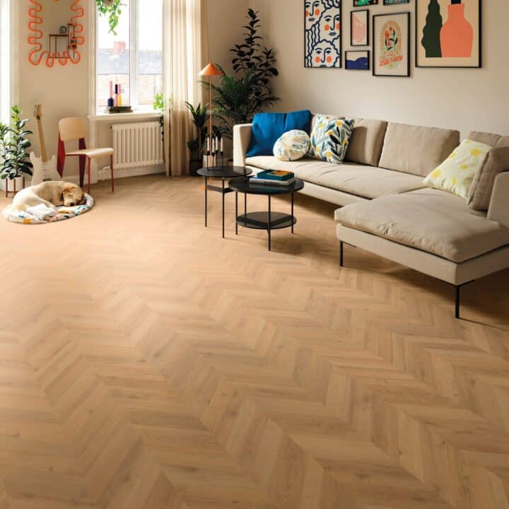 Espiga Dijon FINFLOOR Supreme 281B Vintage-Matt – Los suelos Finfloor Supreme destacan por su ancho de la lama, dando un aspecto muy elegante de tablón, sin perder la esencia de una lama de largo estándar. Modelo con acabado en espiga recreando la espiga tradicional de suelos de parquet antiguos. Son de fabricación nacional, espesor de 8mm y un tablero de dureza al desgaste AC6, por lo que es apto para instalación en zonas de alto tránsito y zonas comerciales. Diseño sin bisel que aporta una continuidad en tus estancias. Cuenta con una nueva tecnología Durable que proporciona al laminado una resistencia adicional frente a ambientes húmedos. Gracias a ello se pueden realizar instalaciones de hasta 12m x 12m (144 m²) sin necesidad de utilizar ningún perfil de expansión, tampoco en los pasos de puerta, lo que proporcionara una agradable estética visual. Apto para suelo radiante y antiestático. Cada caja contiene 6 lamas.