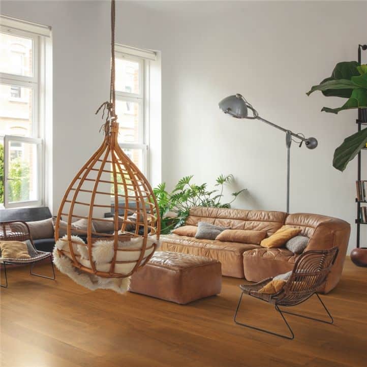 Merbau QUICK STEP Capture SIG4760 – Los suelos de Quick-Step cuentan con  tecnología Scratch Guard lo que hace diez veces más resistentes a las rayaduras. Tarima de alta calidad. Suelos con elegancia y gran variedad de colores. Están hechos por lo menos de un 80 % de madera de origen sostenible. Resistente al agua 24 horas. Bisel auténtico a 4 lados. Antiestático y apto para calefacción radiante, con sistema de anclaje clic.