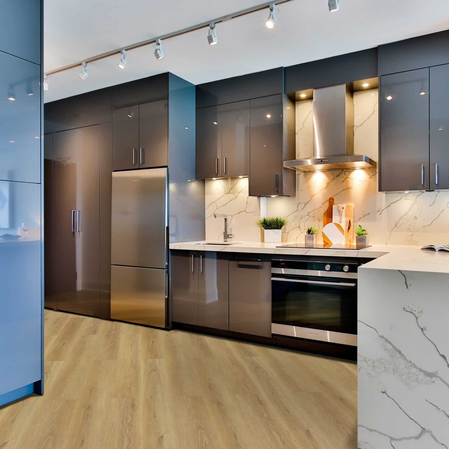 Camel GALAXY LINE Serie Orion Silence Wide – El suelo SPC GALAXY LINE Serie Orion Silence Wide es un compuesto rígido fabricado con polvo mineral, polivinilo y resinas. Su formato de lamas de medidas estándar son 100% resistentes a la humedad, las cuales no sufren alteraciones dimensionales por lo efectos que la humedad pueda producir. Alta estabilidad dimensional que permite su colocación en grandes espacios sin necesidad de poner juntas de dilatación. Es apto para uso residencial y comercial intenso. Incorpora un subsuelo EVA de 1,5mm de alta densidad en cada lama, lo cual evita tener que utilizar ningún otro aislante. Reducción de ruido por impacto 19dB. Apto para calefacción radiante (sistema por agua: máx. 27ºC). Capa de uso 0,55mm. Cada caja contiene 8 lamas .