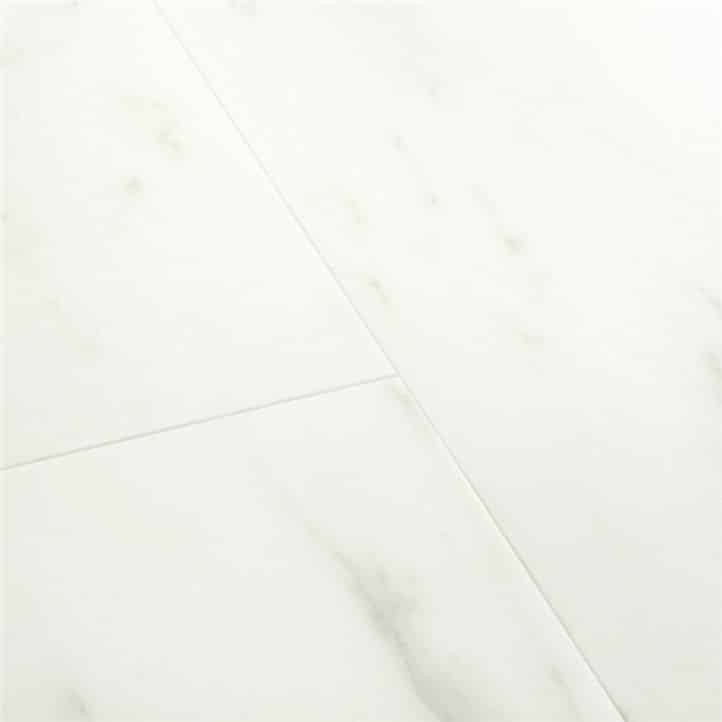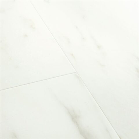 Mármol Carrara Blanco QUICK STEP Alpha Vinyl Tiles AVST40136 – Pavimento vinílico rígido. Apto para calefacción radiante, antiestático en formato baldosa. Gracias a su tecnología hydroseal y su novedoso sistema de anclaje hacen que sea un producto resistente a la humedad 100%. Es de alta resistencia al desgaste y libre de sustancias tóxicas, por lo que es válido para zonas de alto tránsito. Con una protección extra en su capa superior, asegurando una protección superior frente a los arañazos, las manchas, la suciedad y las rozaduras. Sistema uniclic con microbisel a 4 lados. Capa de uso 0,55mm.