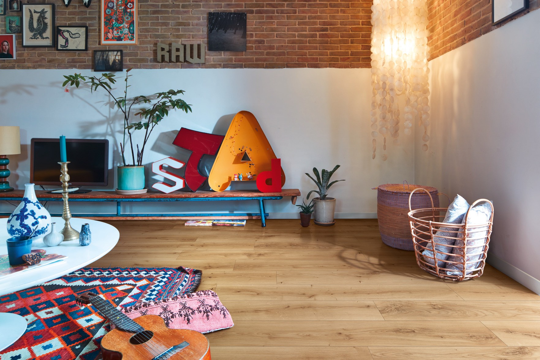 Tantas tonalidades como te puedas llegar a imaginar. El límite en el color de este tipo de tarimas flotantes lo pones tú. Desde suelo laminado blanco hasta suelo laminado de roble natural, espiga o el típico suelo laminado de madera.